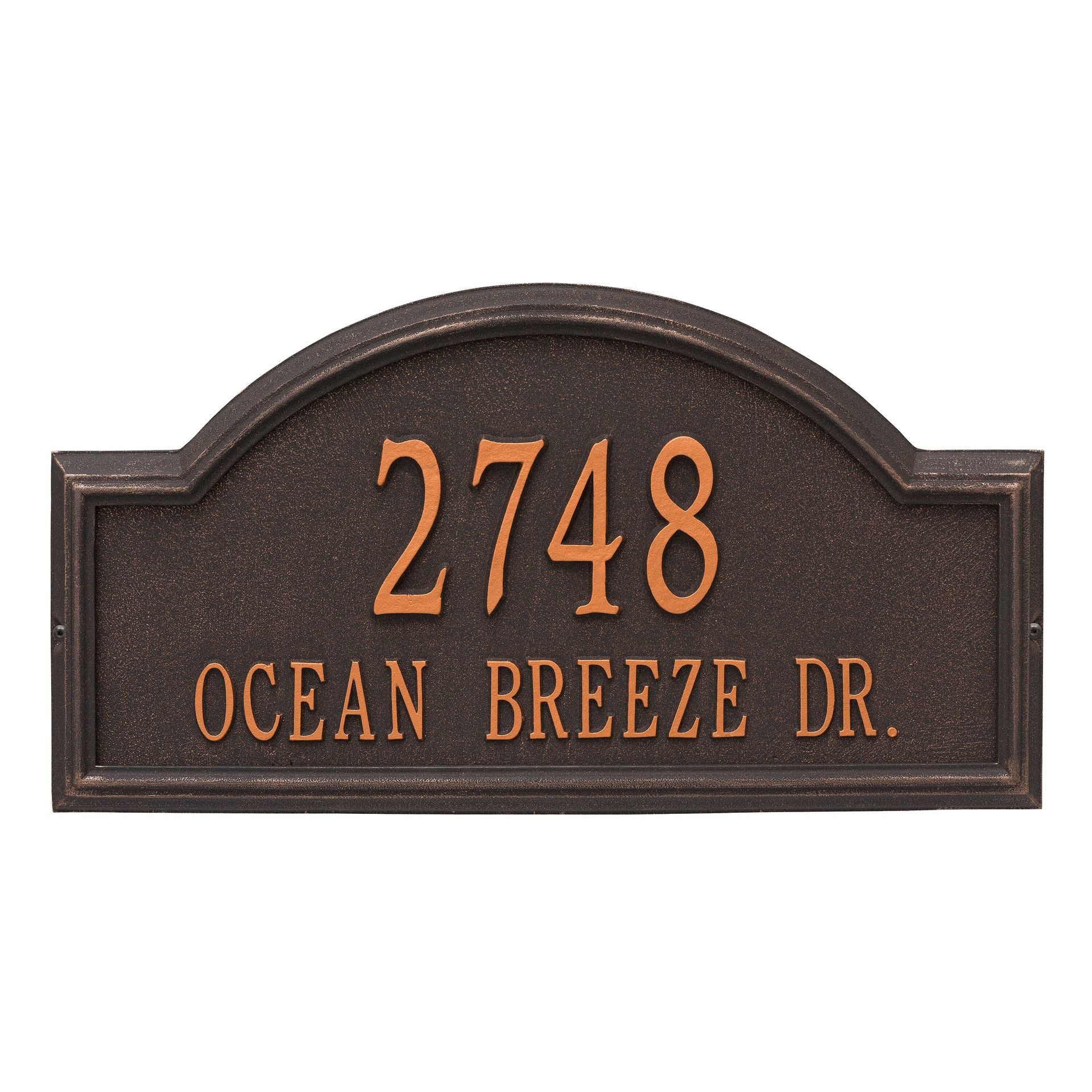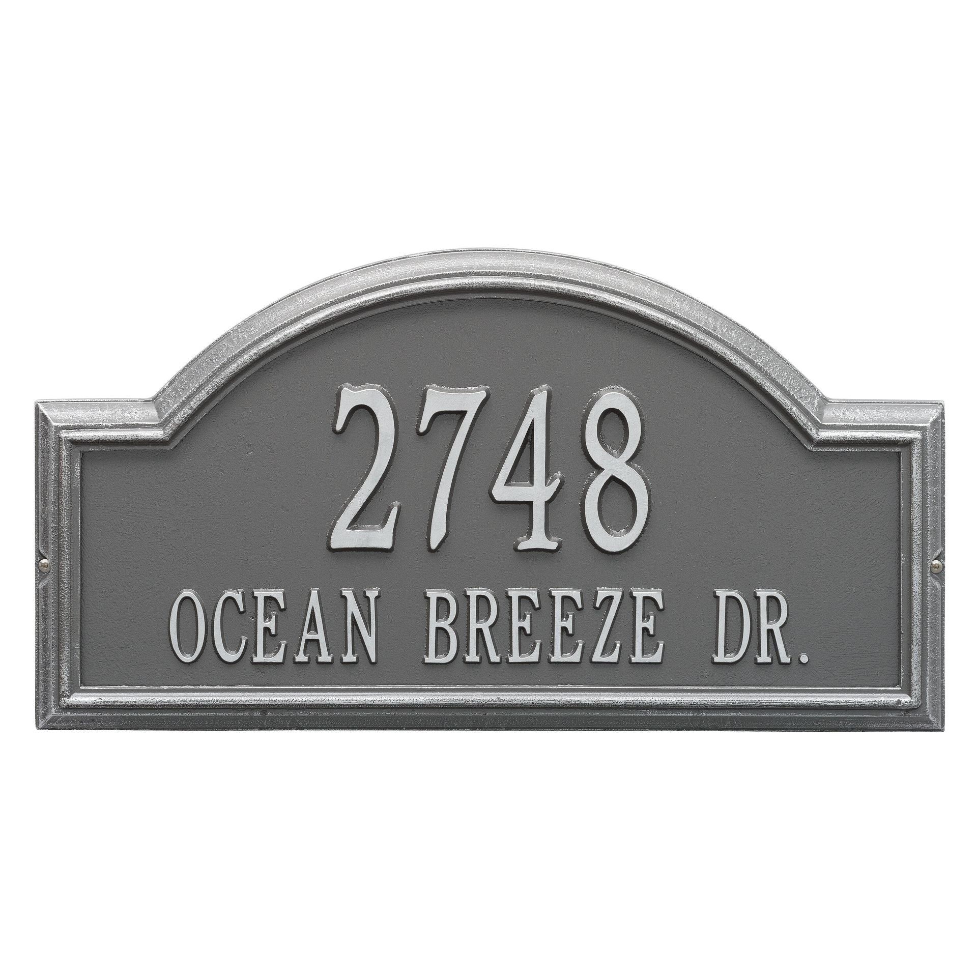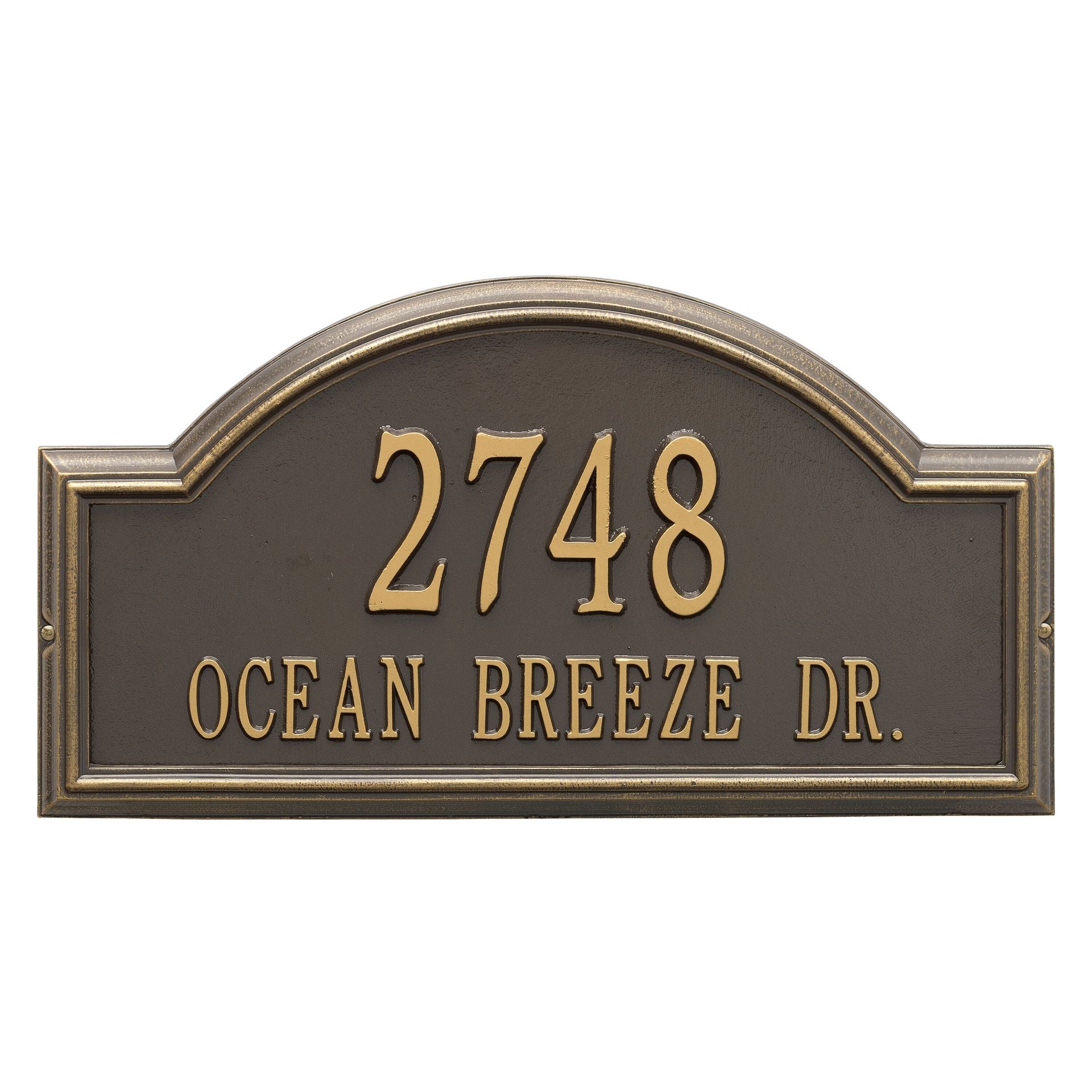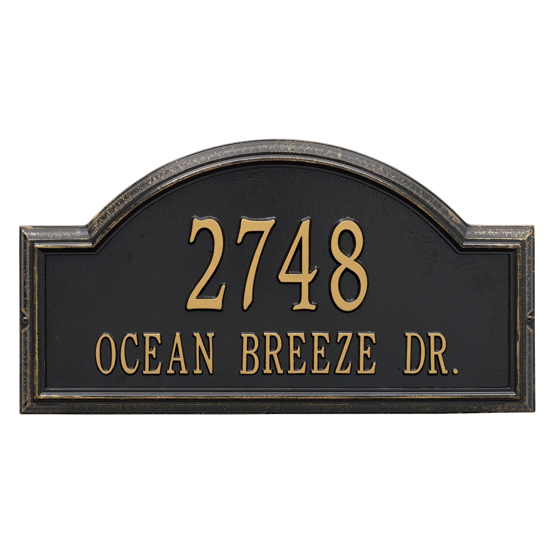 The high relief frame of the Providence Arch house number plaque provides a distinctive appearance that helps your entryway to stand out from the rest. Add this beautiful home address plaque to your list of gift ideas for any occasion.