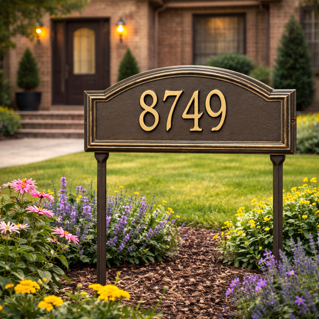 The high relief frame of the Providence Arch house number plaque provides a distinctive appearance that helps your entryway to stand out from the rest. Add this beautiful home address plaque to your list of gift ideas for any occasion.