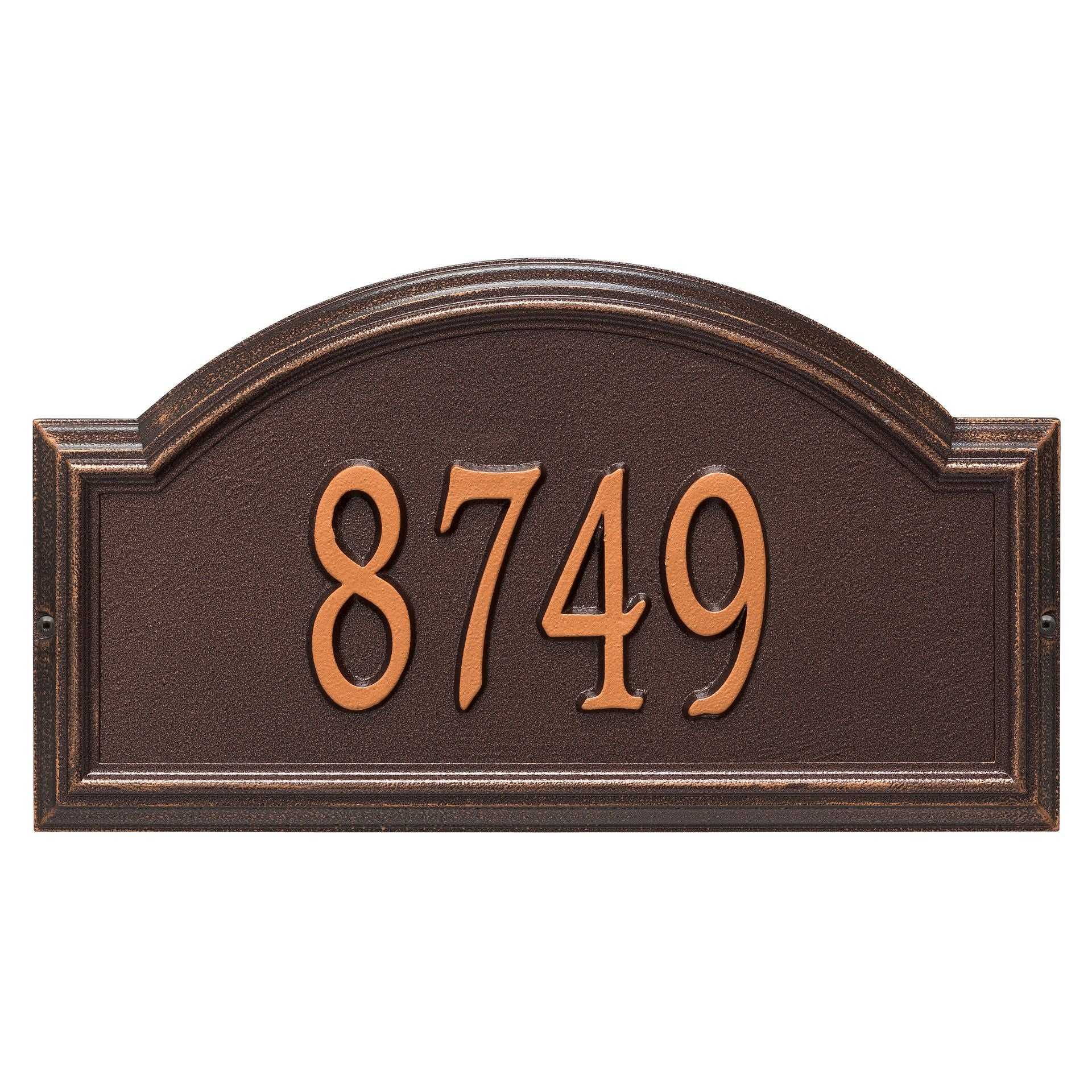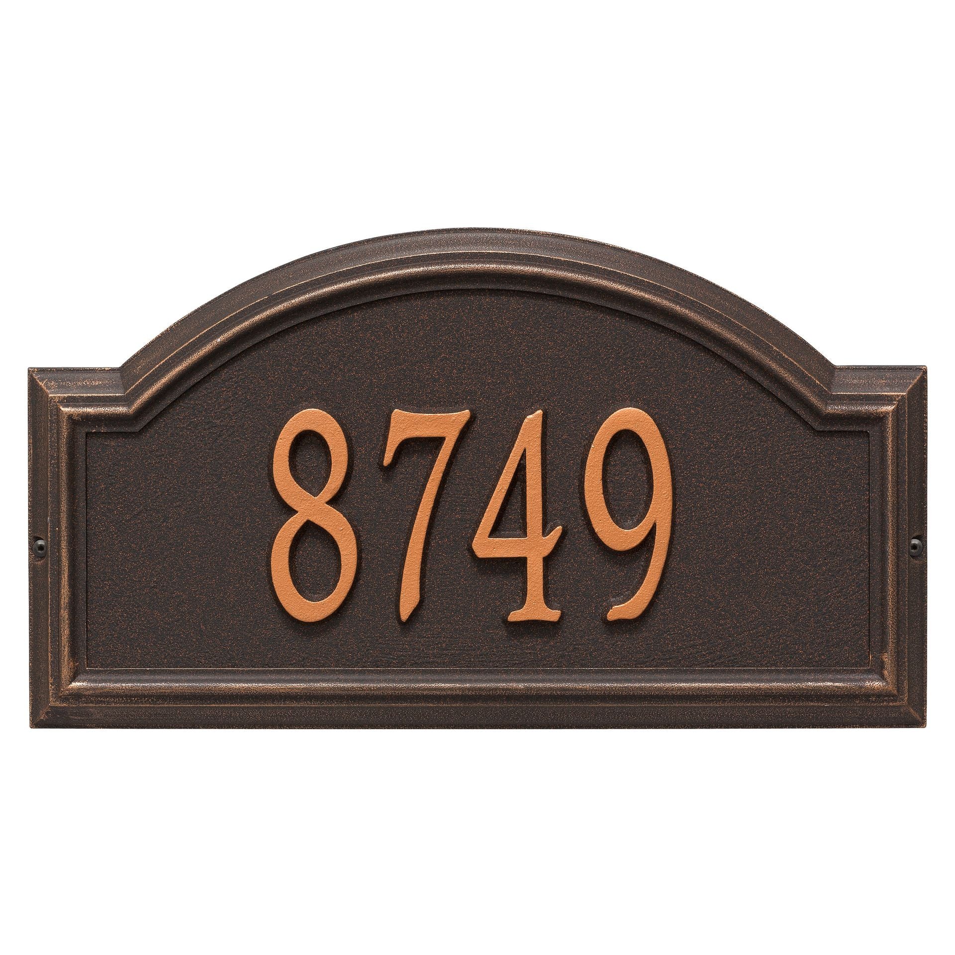 The high relief frame of the Providence Arch house number plaque provides a distinctive appearance that helps your entryway to stand out from the rest. Add this beautiful home address plaque to your list of gift ideas for any occasion.