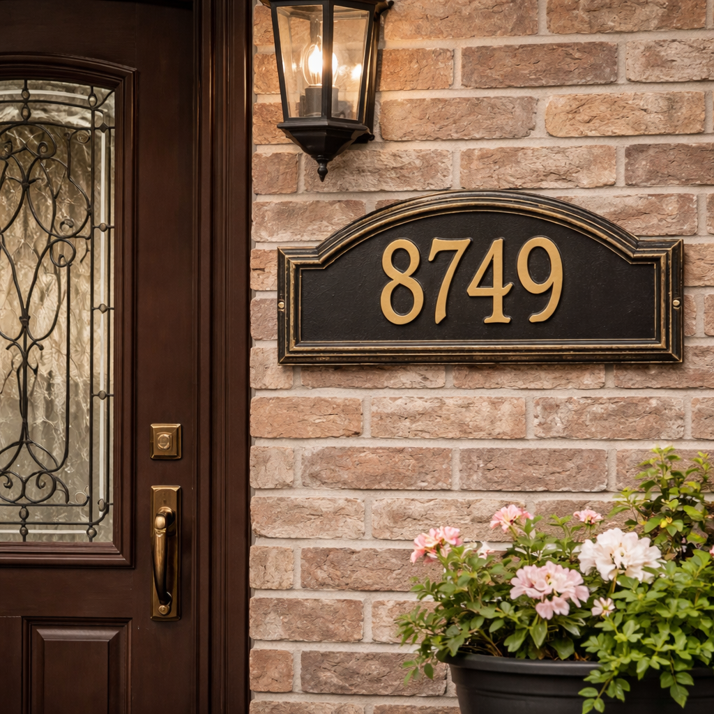 For the best aesthetic, we recommend using ALL CAPS for house numbers and Title Case (e.g., The Hamiltons) for names.